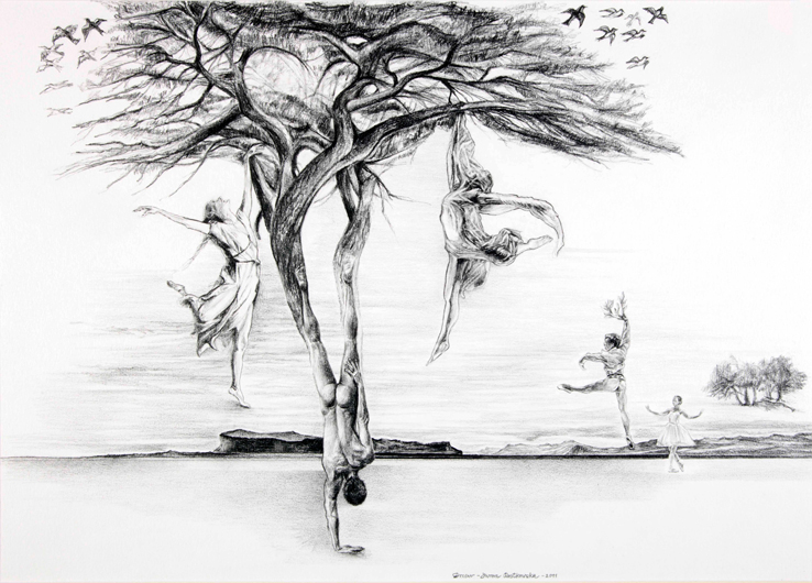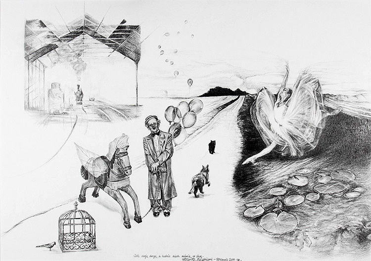 Dlaczego rysunek? Sama się nad tym zastanawiałam. Może dlatego, że od dziecka pasjami rysowałam. Z dużym zaangażowaniem także malowałam pędzelkiem umoczonym w wodzie, po książeczkach do kolorowania, w których kolor pojawiał się pod wpływem samej wody. Nigdy nie miałam wpływu na pojawiającą się pod pędzlem barwę. To za każdym razem projektant obrazka decydował za mnie, i za inne dzieci, o kolorze i odcieniu nieba czy trawy. Może nie uwrażliwiłam się dostatecznie na kolor, a może po prostu tylko rysunek dawał mi prawdziwe poczucie panowania nad dziełem, bo tak naprawdę, to moje rysunki są kolorowe. Ja rysuję kolory mimo, że używam tylko ołówka.