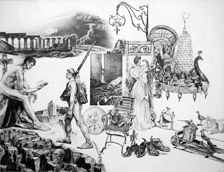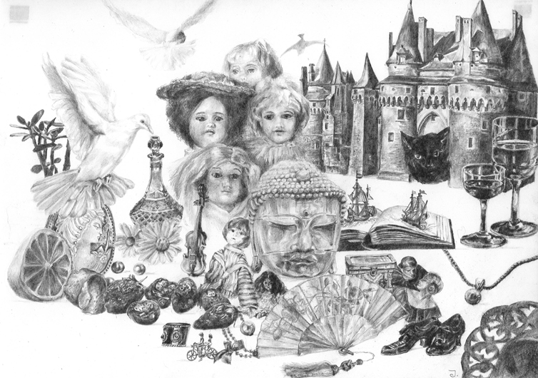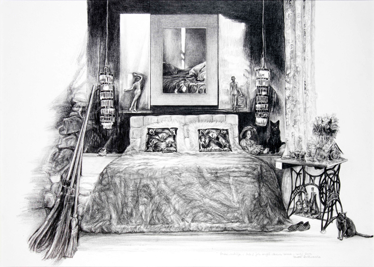 Zawsze zachwycało mnie piękno różnych przedmiotów i chciałam, by one zachwycały też i odbiorcę moich rysunków. Stare lalki, prawdziwe dzieła sztuki, dopracowane w najdrobniejszych szczegółach, o porcelanowych twarzyczkach i oczach z dmuchanego szkła i drewniane koniki na biegunach, o grzywach z końskiego włosia. Statyczność kompozycji moich rysunków związana jest właśnie z miłością do przedmiotu. Musisz mieć czas, by je obejrzeć, dostrzec drobiazgi, niuanse, okruchy, dotknięcia. Zachwyt nie rodzi się w mgnieniu oka. Trzeba go kontemplować, zanurzyć się w nim, dać się ponieść.